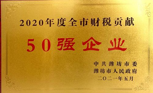 2021年5月11日,集團(tuán)辦公室將濰坊市委、市政府頒發(fā)的兩個(gè)重量級(jí)榮譽(yù)獎(jiǎng)牌領(lǐng)回:2020年度全市財(cái)稅貢獻(xiàn)50強(qiáng)企業(yè);2020年度全市高質(zhì)量發(fā)展領(lǐng)軍企業(yè)。