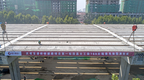 集團承建寶通街快速路項目順利進入全新節(jié)點——高架箱梁吊裝全部完成